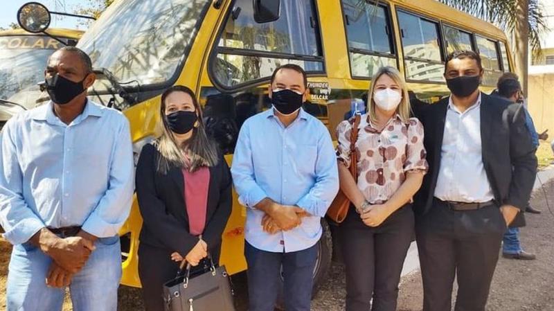 A Prefeita Greta Elisa, o Presidente da Câmara Municipal Serjão, vereador Alex Oliveira e secretária de Educação Lucimara Brizollado receberam o veículo do governador Ronaldo Caiado, secretária Fatima Gavioli e o deputado federal @fatimagavioli1 e deputado federal Adriano Baldy