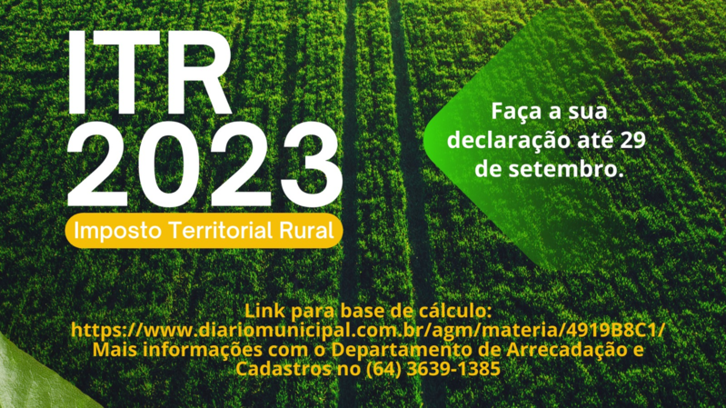 O Imposto Territorial Rural é um tributo fundamental para a manutenção do desenvolvimento rural e da preservação ambiental. Ele incide sobre as propriedades rurais e possui um papel fundamental na gestão sustentável dos recursos naturais e no fortalecimento da economia do campo. A regularidade da situação cadastral e fiscal da propriedade rural é exigida para diversos fins, como financiamentos, transferências, desmembramentos, entre outros. Apesar de ser um imposto federal, os recursos do ITR são destinados diretamente aos Municípios que possuem convênio com a Receita Federal, como é o caso de Perolândia Goiás, onde 100 % da arrecadação do ITR é transferida ao Município, que fica responsável pela fiscalização e orientações aos proprietários.