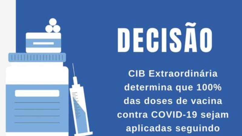 A Comissão Intergestores Bipartite da Secretaria de Estado de Saúde de Goiás (?CIB) se reuniu para pactuar as alterações propostas no Programa Nacional de Operacionalização da Vacinação contra COVID-19. Ficou definido, por meio da Resolução CIB n° 100/2021, que 100% das doses de vacina contra COVID-19 para a população geral, em ordem decrescente.